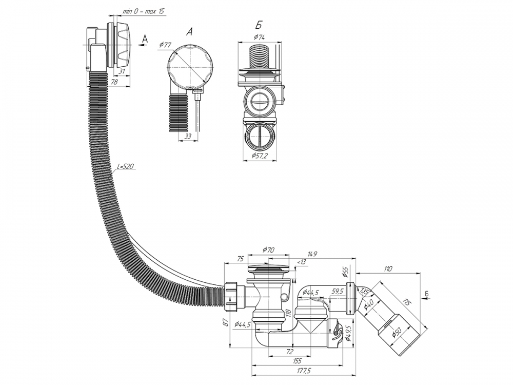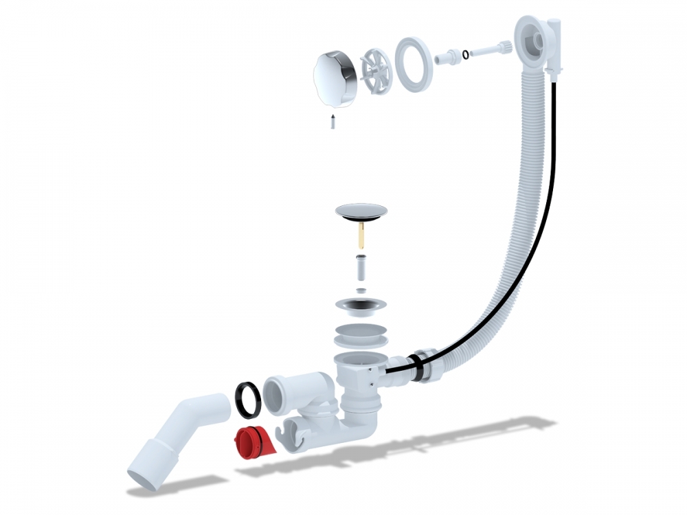 Система включает в себя вентиль, донный клапан и тросик, позволяющие легко управлять процессом слива воды. Поворот вентиля обеспечивает удобное открытие и закрытие донного клапана, а встроенный гидрозатвор предотвращает проникновение неприятных запахов из канализации, обеспечивая комфортное использование ванной.