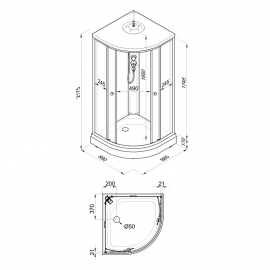 Комплектация*: душевая кабина, поддон, сифон, смеситель, 2 душа