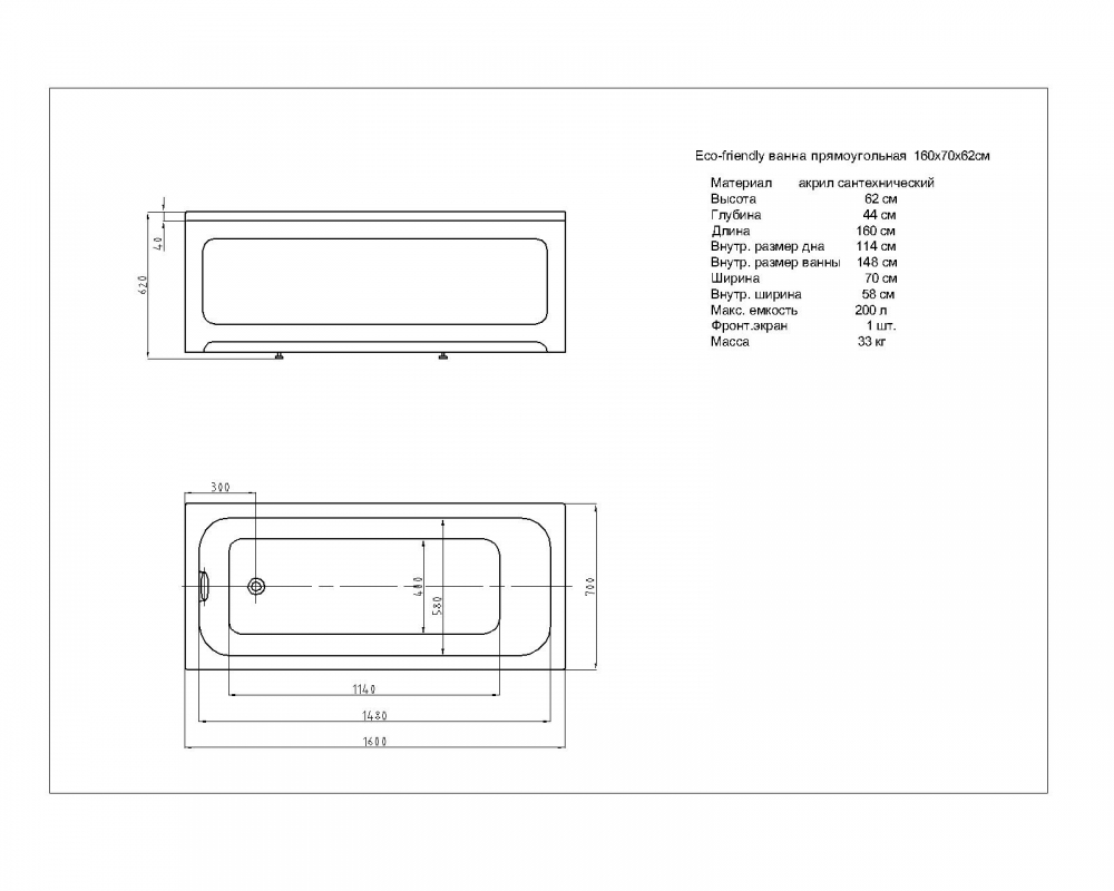 ПодробнееВанна прямоугольная литьевой акрилл (100%) Aquatek МИЯ 160x70