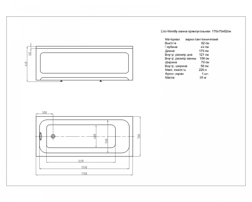 Комплектация*: ванна