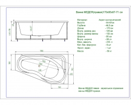 ПодробнееВанна ассимметричная литьевой акрилл (100%) Aquatek МЕДЕЯ 170x95