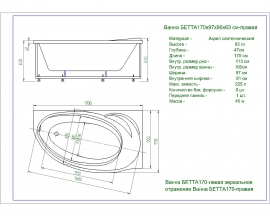 ПодробнееВанна ассимметричная литьевой акрилл (100%) Aquatek БЕТТА 170x97