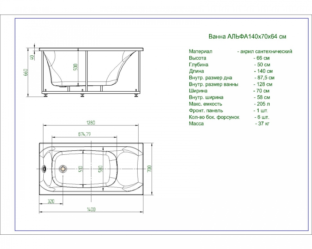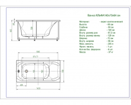 ПодробнееВанна прямоугольная литьевой акрилл (100%) Aquatek АЛЬФА 140x70