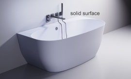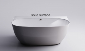 Литьевой мрамор SOLID SURFACE: композитный материал белого цвета на всю толщину изделия, нанесение защитного покрытия не предусмотрено. Имеет матовую поверхность. Возможна реставрация.