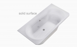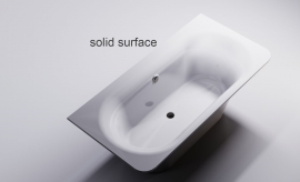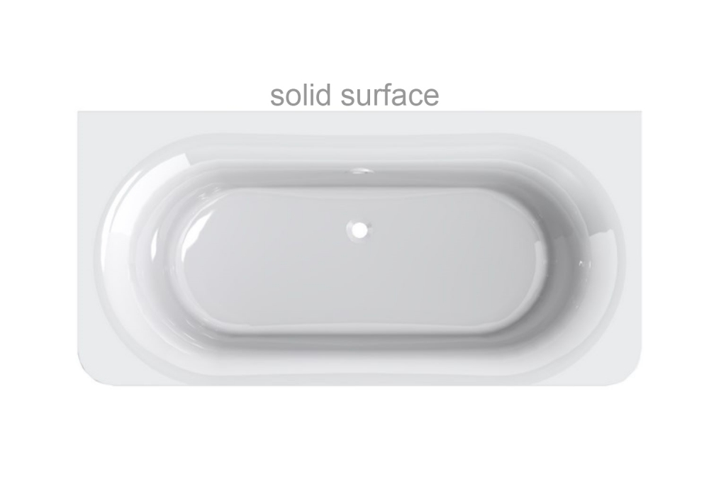 Литьевой мрамор SOLID SURFACE: композитный материал белого цвета на всю толщину изделия, нанесение защитного покрытия не предусмотрено. Имеет матовую поверхность. Возможна реставрация.