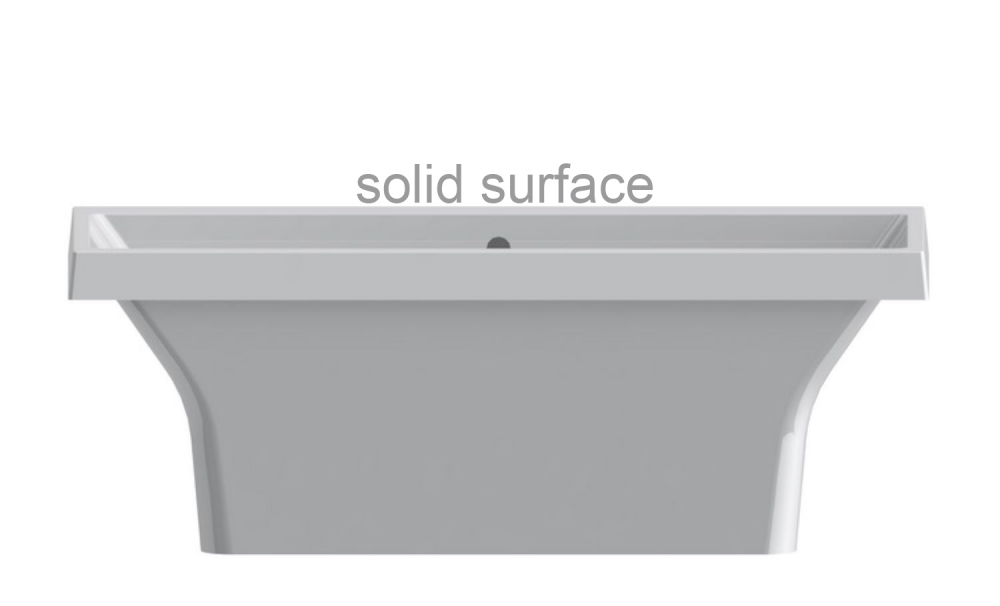 Литьевой мрамор SOLID SURFACE: композитный материал белого цвета на всю толщину изделия, нанесение защитного покрытия не предусмотрено. Имеет матовую поверхность. Возможна реставрация.