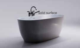 Литьевой мрамор SOLID SURFACE: композитный материал белого цвета на всю толщину изделия, нанесение защитного покрытия не предусмотрено. Имеет матовую поверхность. Возможна реставрация.