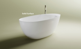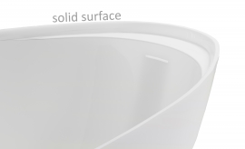 Литьевой мрамор SOLID SURFACE: композитный материал белого цвета на всю толщину изделия, нанесение защитного покрытия не предусмотрено. Имеет матовую поверхность. Возможна реставрация.